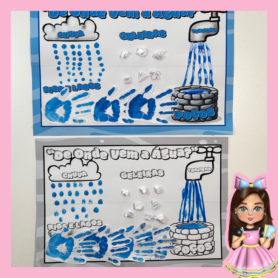Esse combo de cartazes coletivos é perfeito para ensinar as crianças sobre a importância da água de maneira visual e lúdica! ✨