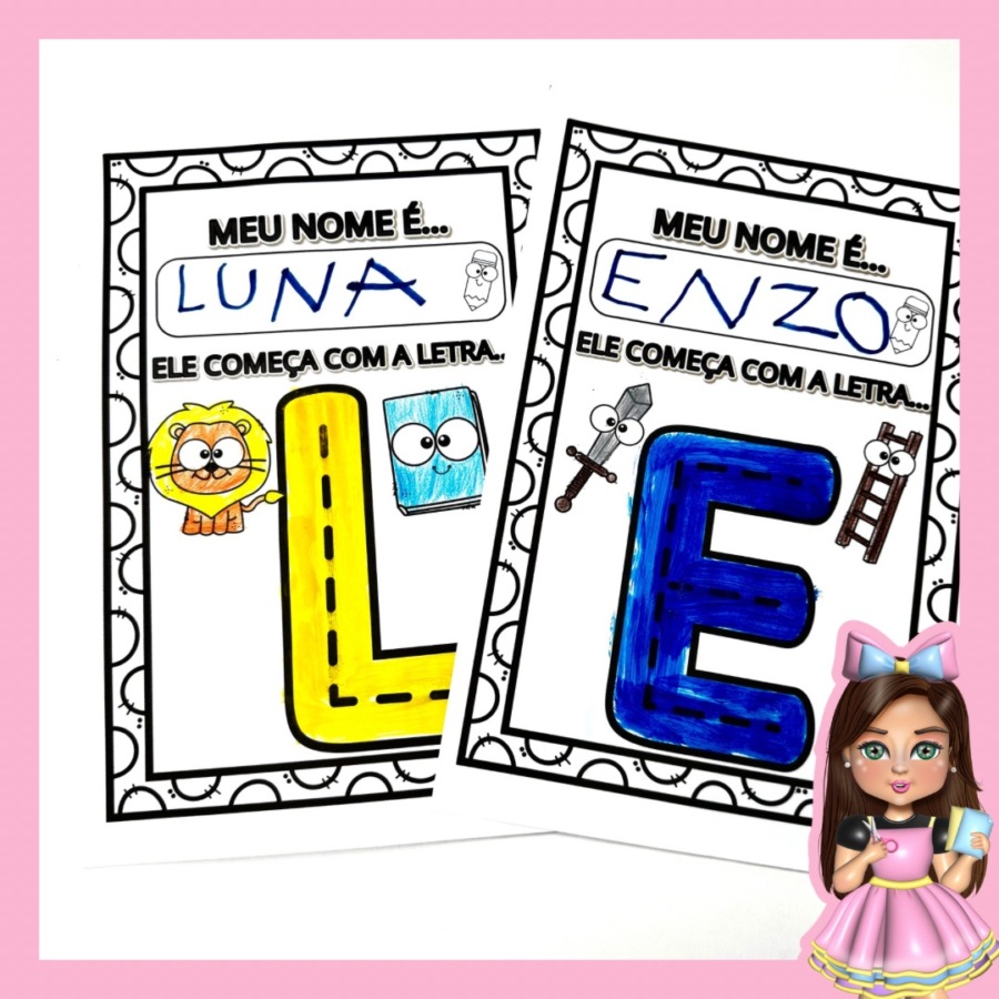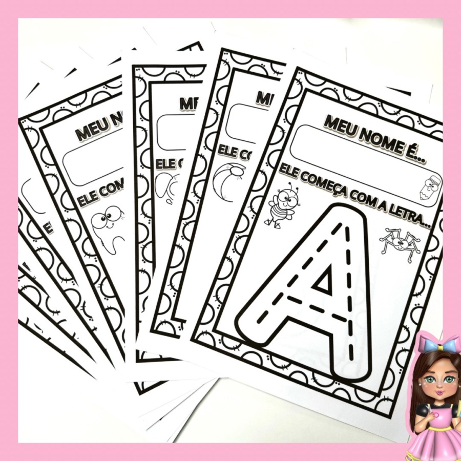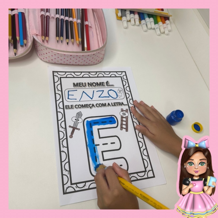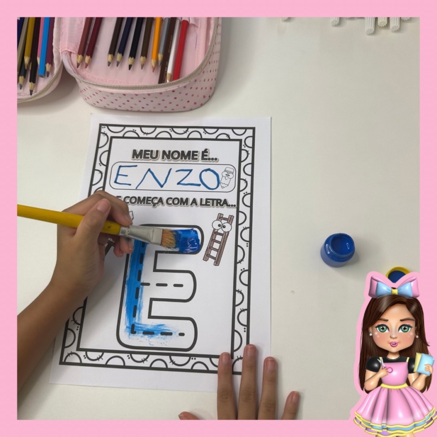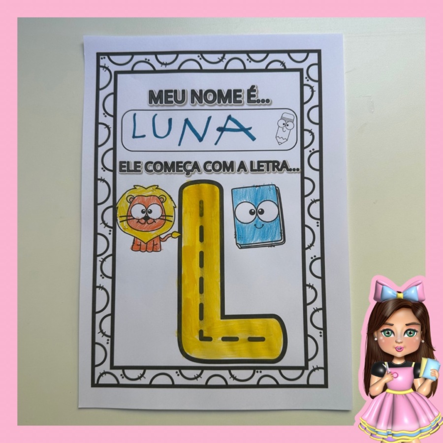 “Atividade interativa para trabalhar a primeira letra do nome! 🎨🖍️ Inclui todo o alfabeto para as crianças escreverem, pintarem e aprenderem de forma divertida. Adquira o PDF e transforme o aprendizado em diversão! ✨📚