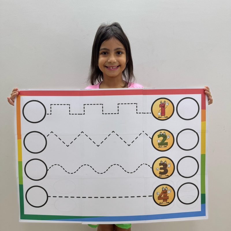 As crianças vão traçar o caminho com o dedinho, com tampinhas ou até com massinha — tudo pra fortalecer a coordenação motora e reconhecer os números brincando!