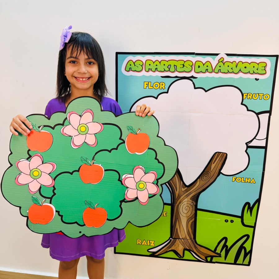 As crianças descobrem de forma lúdica cada parte: raiz, caule, folhas, flores e frutos.